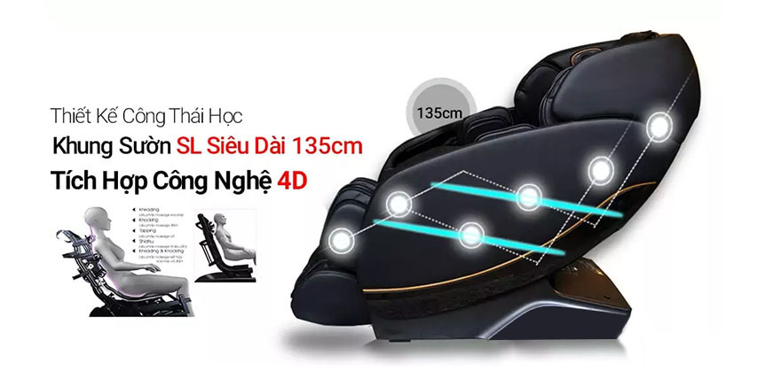 Các vấn đề về xương khớp, cột sống được chăm sóc tốt hơn nhờ khả năng ngả toàn bộ người ra phía sau lên tới 130 độ, giảm tải áp lực lên vùng bụng và cột sống, giải phóng sức ép của hệ thống xương khớp. Từ đó hồi phục chức năng xương khớp, điều chỉnh cột sống, cơ thể được thư giãn tối đa.
